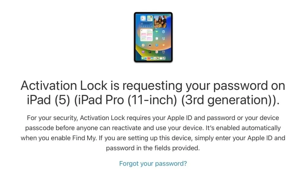 その後、彼らは私のiPadをMacかPCに接続し、AppleのDFUリカバリモード機能を使ってデータを消去したのだと思います。これにより個人データはすべて消去されましたが、デバイスのアクティベーションロックは解除されませんでした。これが、「探す」アプリからアクティベーションロックがパスコードを要求しているというメールを受け取ったきっかけです。